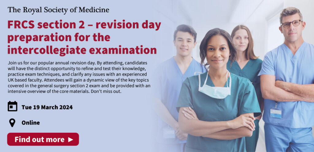 For more information and to register for FRCS section 2 – revision day preparation for the intercollegiate examination, visit the RSM website.